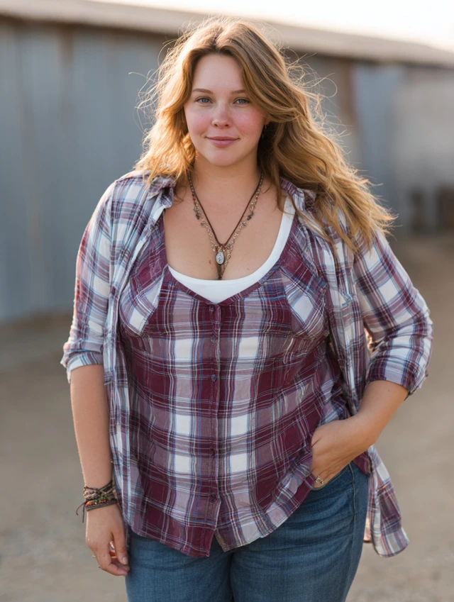 Why It Works: The fitted tank highlights your shape, while the flannel adds a laid-back edge.