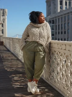 Why It Works: Balances the oversized bottoms with a flattering cropped silhouette.