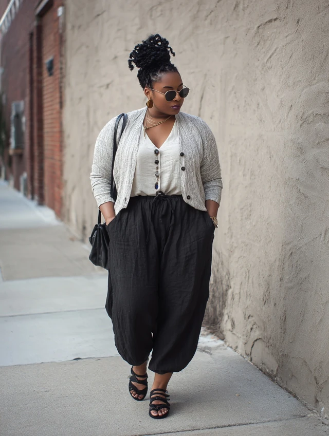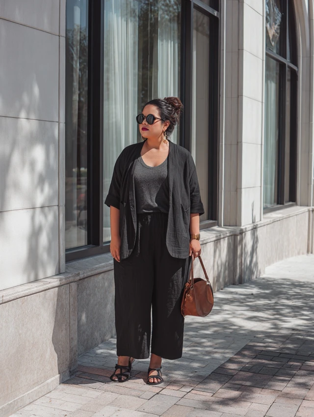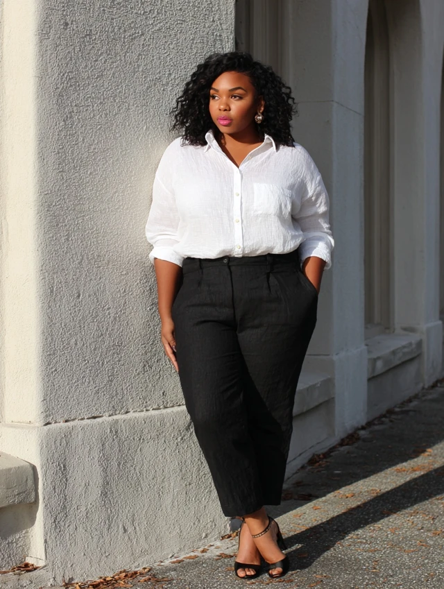 Black Linen Pants Outfits for Plus-Size Women: Breezy, Polished & Effortless