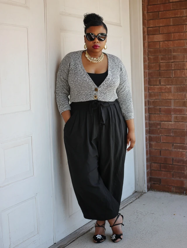 3. Black Linen Pants + Cropped Cardigan