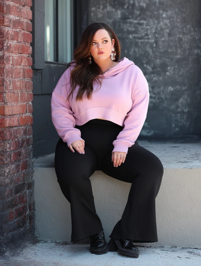 - Top: Cropped hoodie, oversized sweater, or a fitted bodysuit for balance.