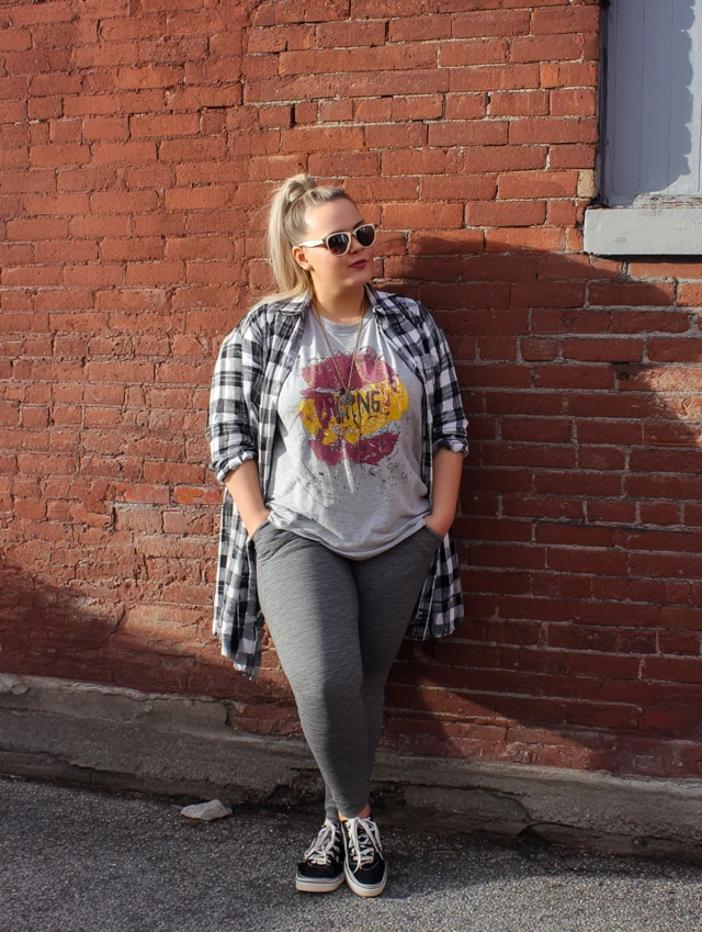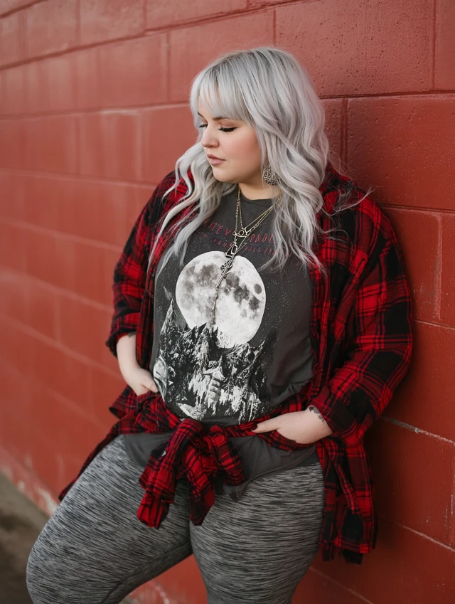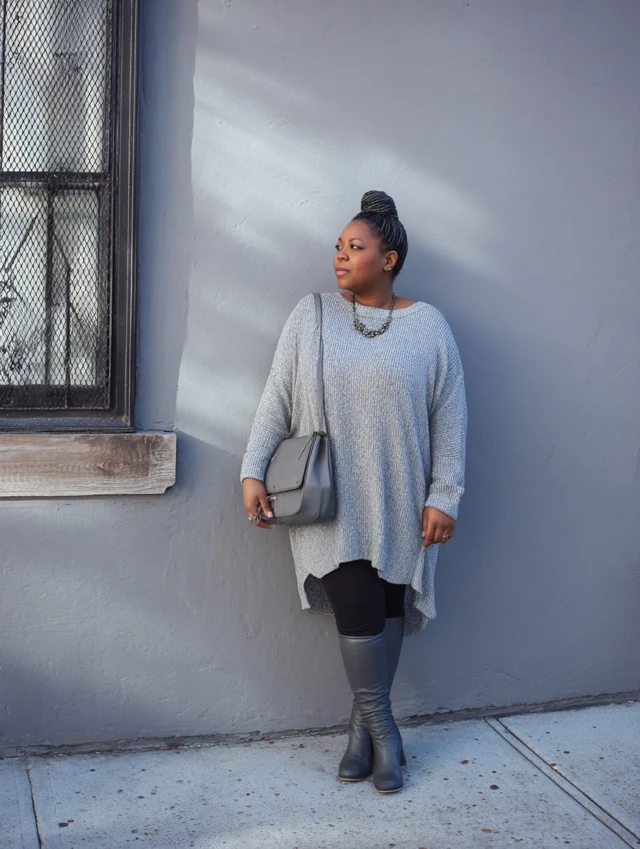 Grey leggings are a comfortable, versatile base that can be styled dozens of ways. For plus-size women, they’re a flattering alternative to basic black leggings and the perfect piece for casual-chic outfits.