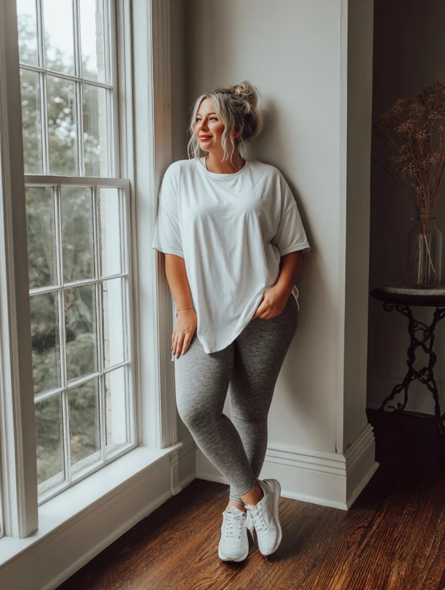 Grey Leggings Outfits for Plus-Size Women: Sleek, Sporty & Effortlessly Versatile