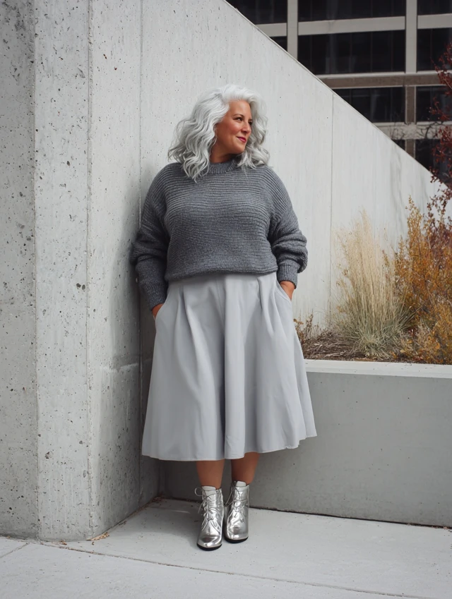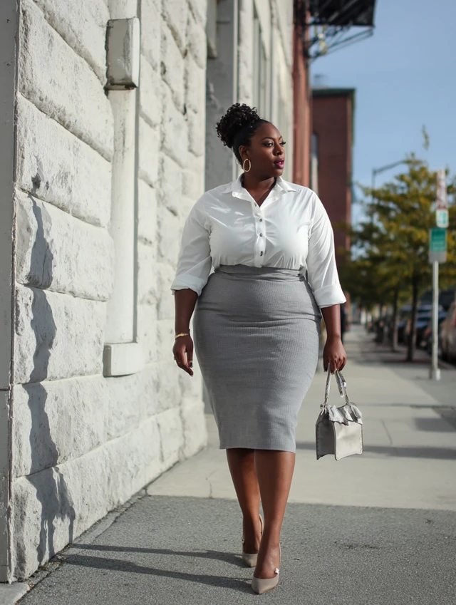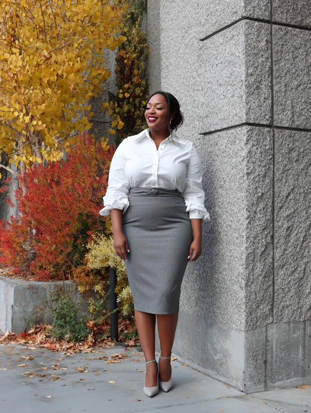 Grey Skirt Outfits for Plus-Size Women: Chic, Neutral & Effortless