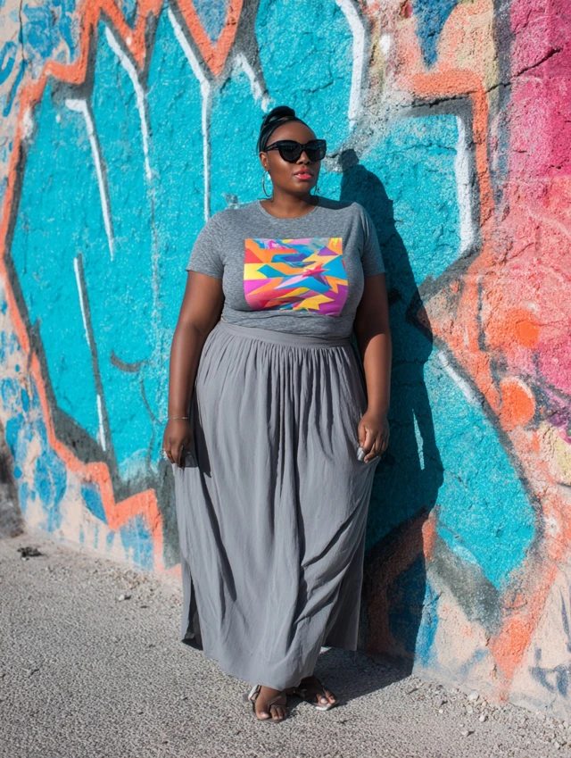 A grey skirt is the quiet hero of any plus-size wardrobe — sophisticated, flexible, and always appropriate. With the right styling, it can take you from desk to dinner, errands to evenings out, without missing a beat.