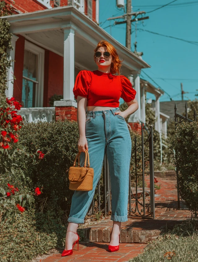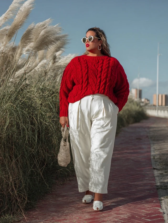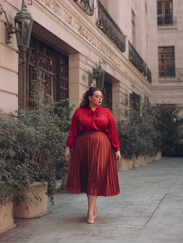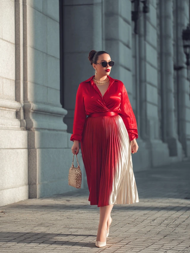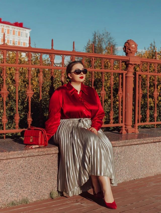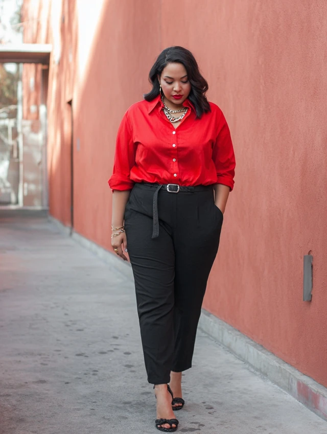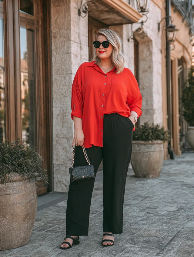 Red pairs beautifully with neutrals like black, white, beige, and denim — but don’t be afraid to mix it with leopard print, plaid, or bold jewel tones for drama. Play with textures: silky red blouses for evening, cotton tees for casual days, and knits for cozy seasons.