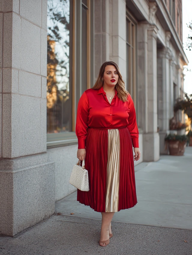 - Accessories: Gold jewelry, neutral handbags, belts to define the waist.