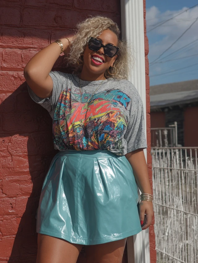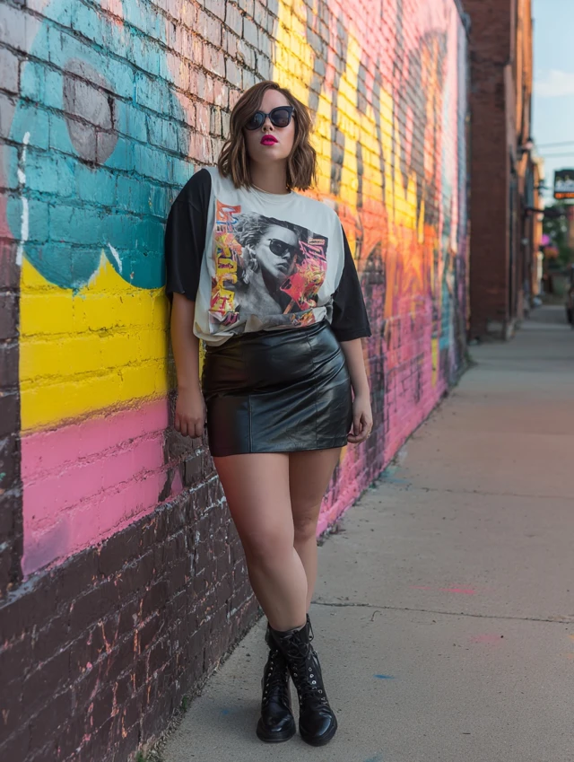 5. Vinyl Mini Skirt + Oversized Graphic Tee