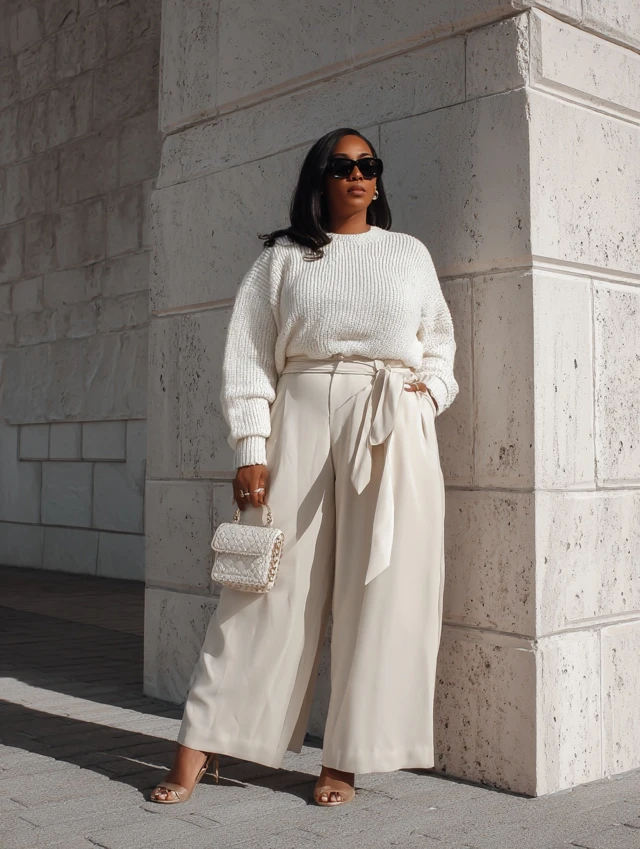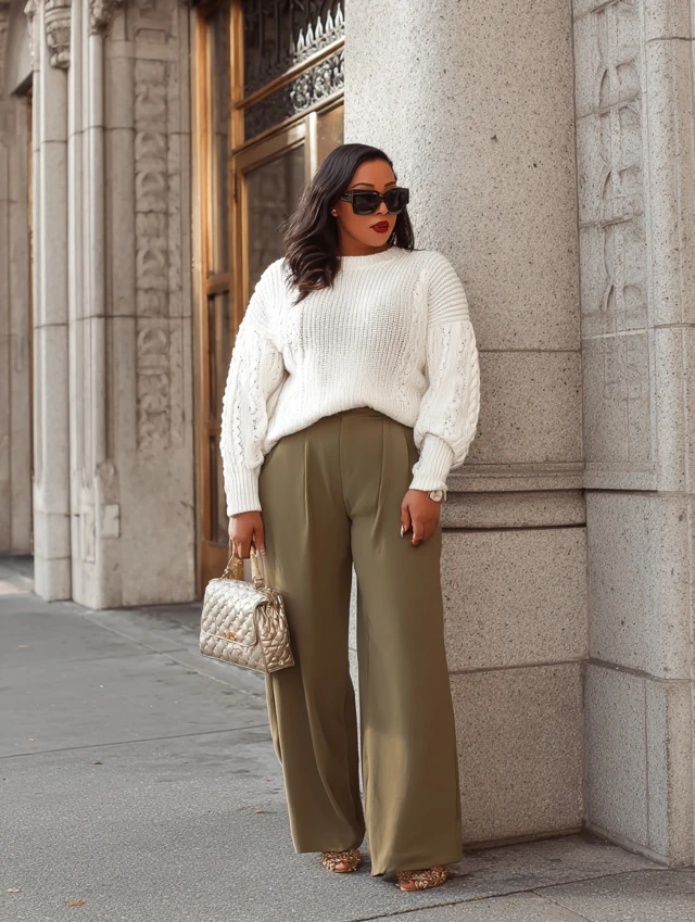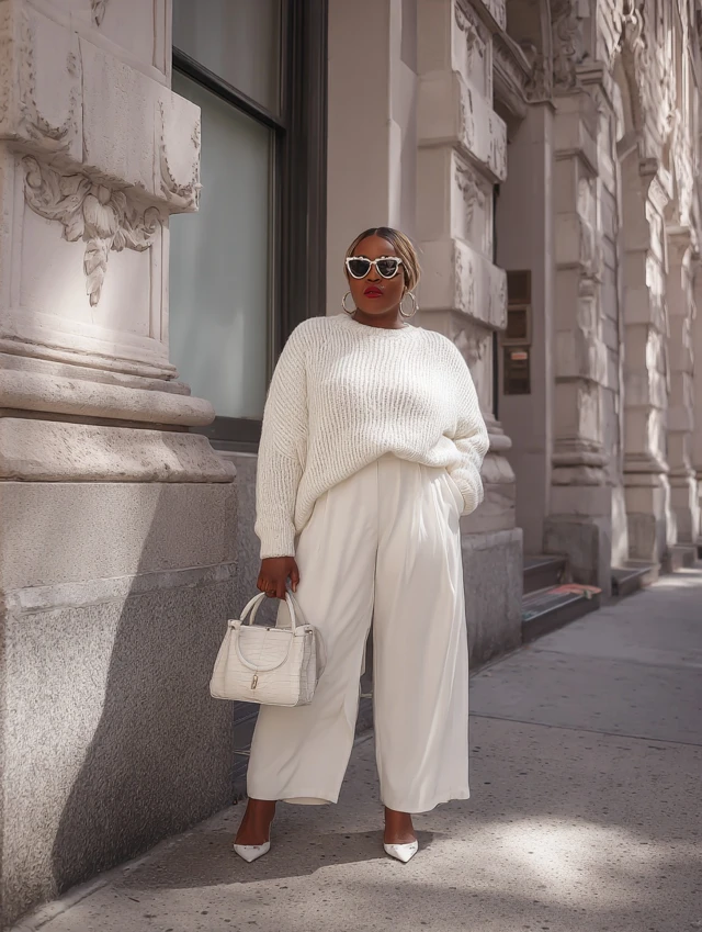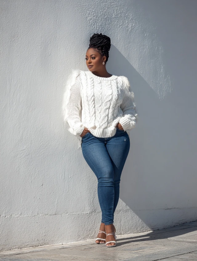 The key to styling a white sweater is to balance its softness with the right bottoms and accessories. Here’s the go-to formula: