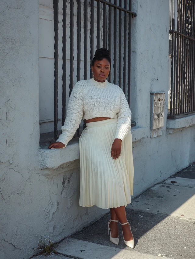 - Foundation: White sweater (chunky knit, cropped, oversized, or fitted).